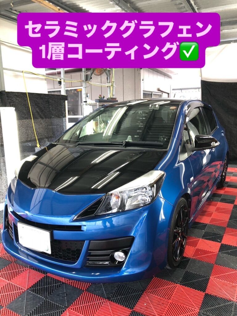 当店でのコーティング施工は、皆さんよくご存じのガラスコーティング施工はもちろんですが、セラミックグラフェンコーティング施工も行っております。ガラスコーティング施工と素材はもちろん違いますし、ボディカラーの艶・深みもかなり変わります!